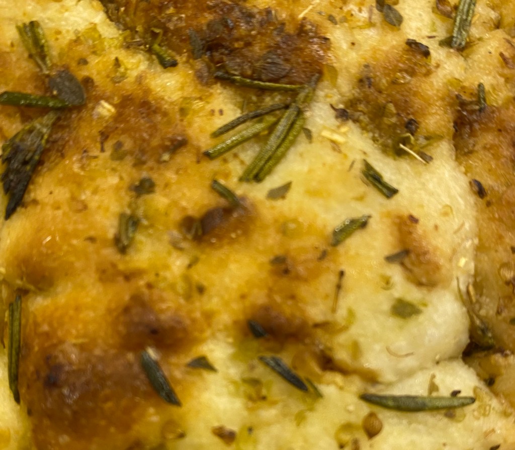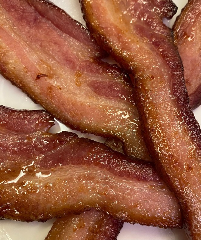 I wasn’t able to fall back to sleep immediately, but he was. I stayed under the covers while my mind raced with thoughts of deconstructed bacon, egg, and cheese sandwiches. I’d start with thick cut applewood smoked bacon in the cast iron skillet and use the bacon grease to do a quick sauté of the second half of the amazing focaccia that I planned to cube and season. Sunny eggs with a sprinkling of cheese would be carefully slid on top of the bread base and bacon would either be chopped and added to the top or served on the side. Both? I wasn’t sure if I felt awake enough to grate my own cheddar from the block or cheat by using the Sargento extra sharp, pre-grated stuff in the resealable bag. Stomach rumbling, I was finally able to go back to sleep once I’d nailed the recipe in my head.