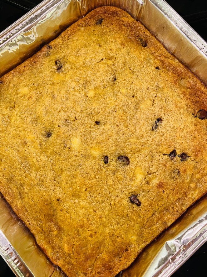 I happen to have a delicious recipe for the stuff that is completely addictive. I warn you that it’s a bit on the Oh My God I’ve Eaten Another Square good, so if you’re feeding a party larger than one (yes, I’m completely serious), feel free to double the recipe, use a bigger pan and add about 20 minutes more oven time.