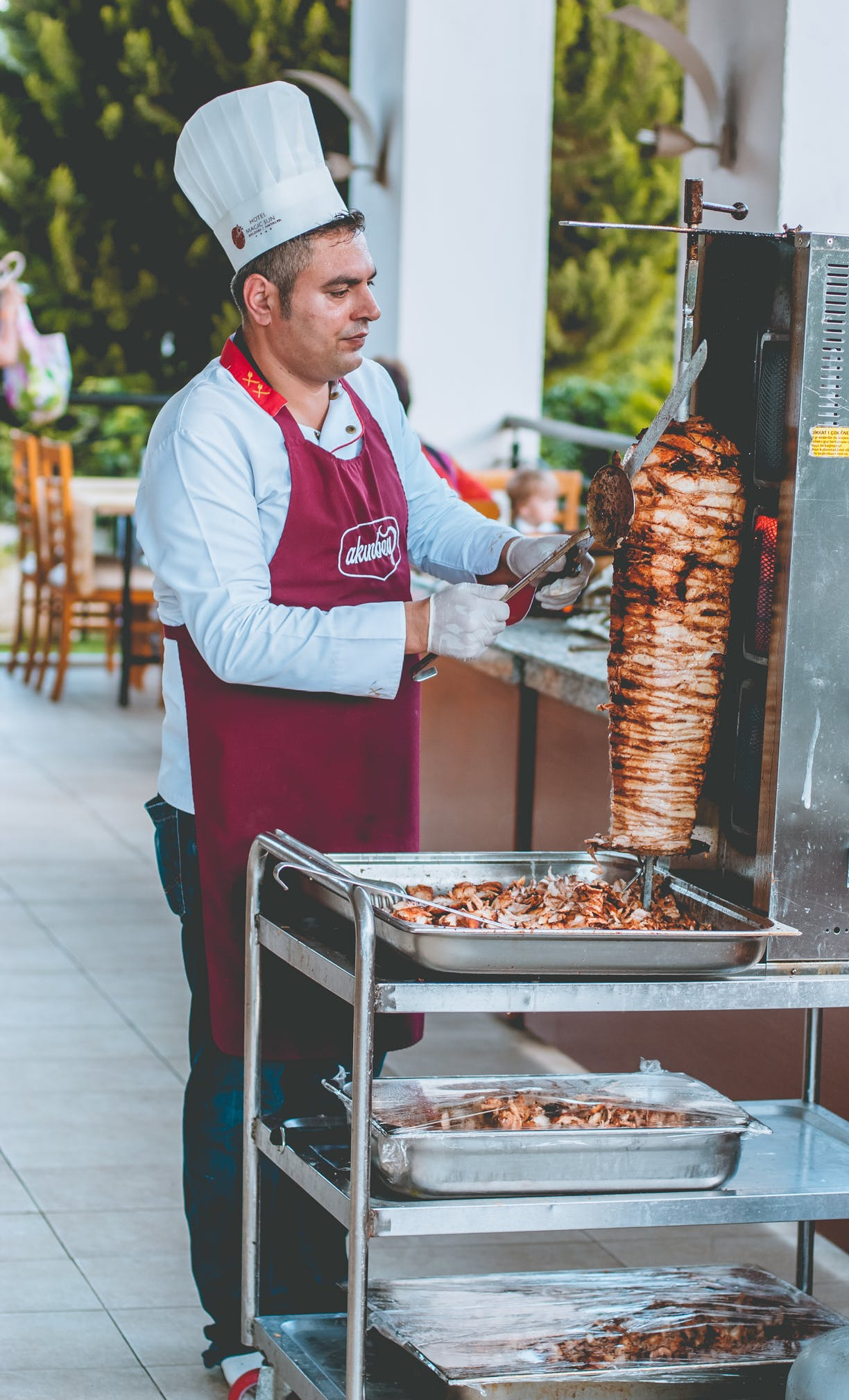 Even though we were on the Modified American Plan, which included breakfast and dinner, the food at the hotel got boring after a couple of days. So we would venture into town for dinner and always pass The Beef Wheel. My sister could barely look at the thing. It was a hunk of gray colored beef (pork? lamb?) circling round and round on a spinner while the sun charbroiled it. A short, smiley, white-hatted chef with gold teeth leaned a long, sharp blade to the edge to shear off a serving of the mystery meat to the lined-up locals. (The Beef Wheel was never a dinner option for us.)
