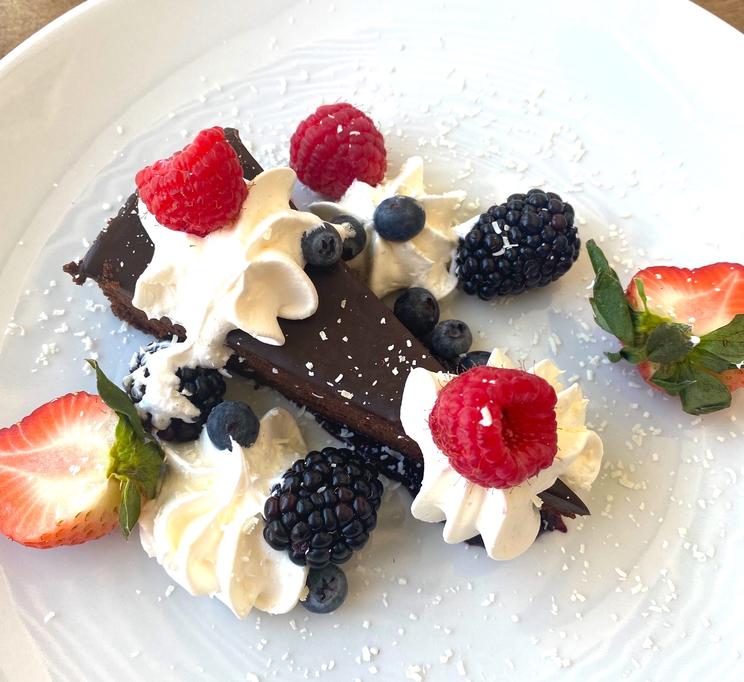 Of course I left room for dessert. I eased right into the Warm Cinnamon Chocolate Fondue with pound cake squares, mini marshmallows, fresh berries, and banana slices. I didn’t finish the gigantic thing, but I loved the dippable cake and cut up fruit.