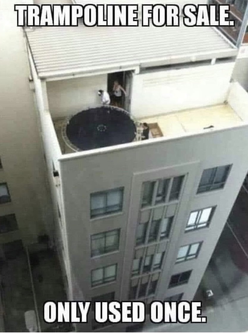 “Jenster. Those steps are a deal killer. (No pun intended.) But the tramp looks like fun! And it’s gently used. What a plus. My brother’s cat Furby just sent me this tip…”