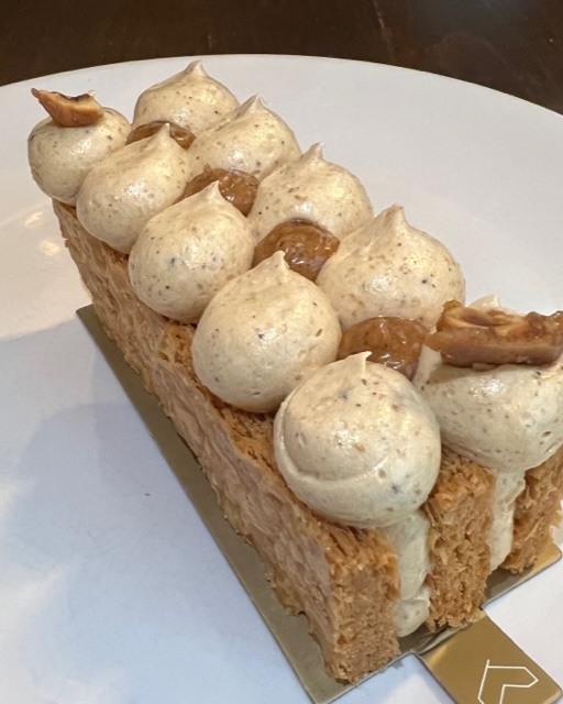 Sadly we never made it into Cedric Grolet for pastries because the dang line was just too long. But we were able to enjoy his fabulous XXL Hazelnut Cookie courtesy of our generous friends Janey and Steve. It was hazelnut cookie dough, hazelnut praline, fleur de sel, caramel, Alain Ducasse hazelnut paste, and caramelized hazelnuts. Utterly divine! (We will definitely catch ya next time, CR.)