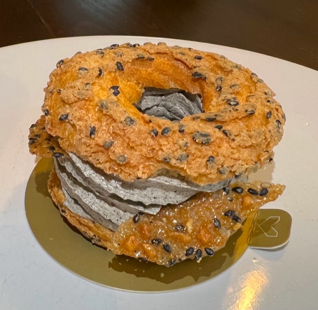 The Paris-Brest is always one of my favorite French desserts. It’s a classic featuring a crisp, almond-studded baked ring of pâte à choux that’s split in half horizontally and then filled in the middle with a mixture of vanilla pastry cream, praline paste, and whipped butter. I can’t even! The restaurant Ai Fiori in NYC makes a fabulous version. However in Paris, the top spot went to Mori Yoshida for his Paris-Brest with a Japanese twist of black sesame in both the dough and the cream.