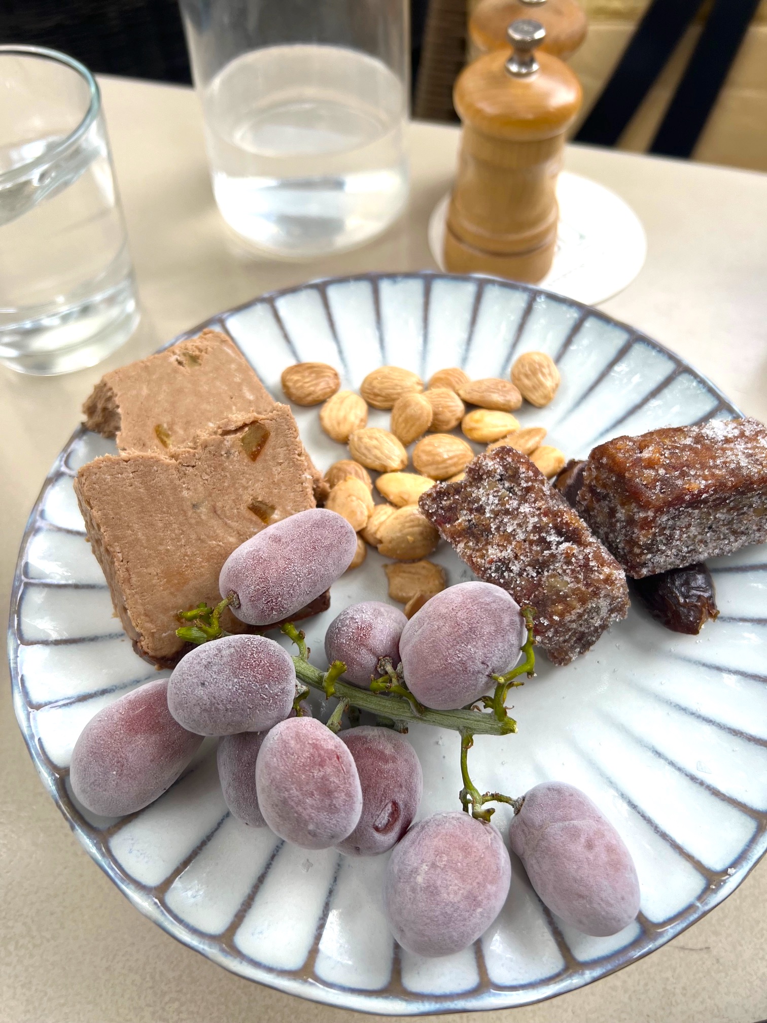 If you know me, you know that I usually prep my guests beforehand that we are having dessert and this meal was no exception. We sampled a trio of sweets including the Chocolate Chocolate Cake that had isot chili, chocolate sauce, and whipped cream, the Halva with roasted grapes, Marcona almonds, and a wonderful little date bar, and the most gigantic scoop of sharable Lemon Meringue Frozen Greek Yogurt that had a tangy lemon curd drizzle and zesty lemon flakes.