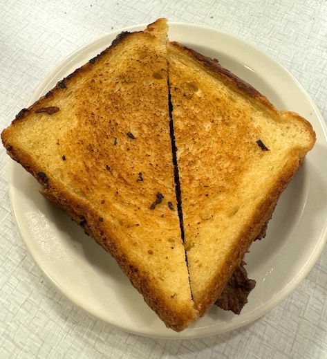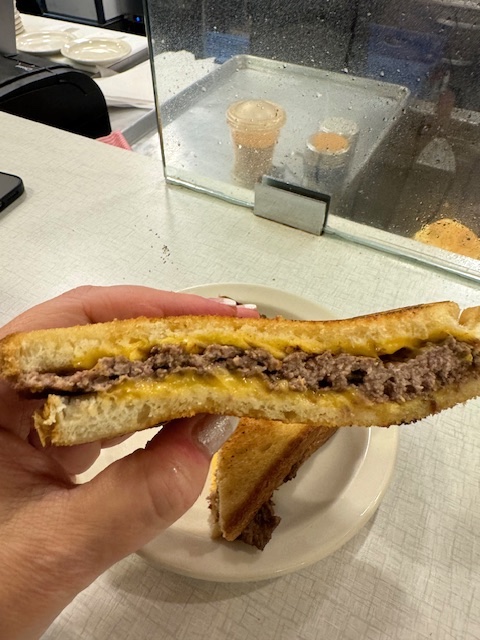 In addition to our two burgers and one order of golden fries to share (Yes, there’s MORE!) we even managed to score the super-secret Patty Melt– but if you don’t order it by its codename “The Chester,” they won’t acknowledge its existence because it’s off menu and therefore off limits. The Chester is basically a single burger slid neatly into a crispy grilled cheese sando. We were completely overstuffed when it arrived but managed to save room for a few bites and wow, it was ridiculously amazing. The bread to cheese to meat ratio in each transcendent triangular was utter triumph in the way the Great Pyramids have achieved mathematical perfection.