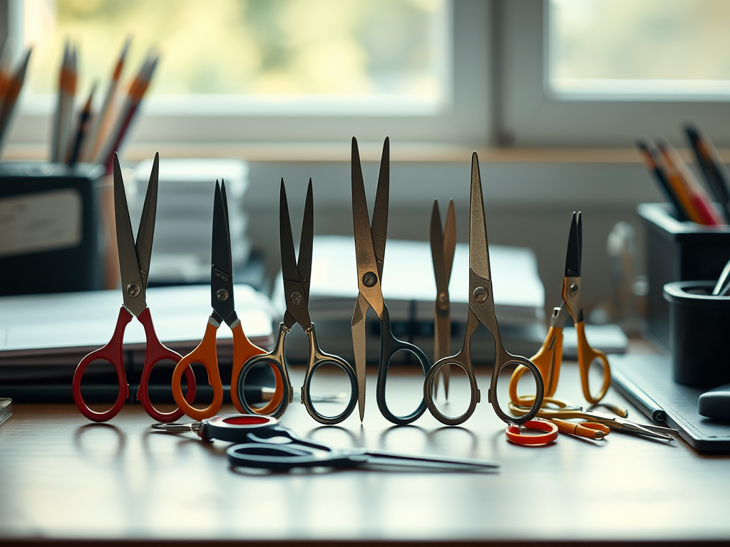 So as she sits regal on the dining room table, naked in her originally purchased state, I’m both embarrassed and proud to reveal a new household item that has diverted my artistic attention. My desk recently acquired a new treasure from that same pesky housewares store from which I just can’t seem to escape unscathed. (See how I was able to transfer blame there to the desk? Yep, getting good at this shopping thing!) And just like I have a tendency to to gravitate toward interesting knives, I’m now developing a scissor habit. Yes, you read that correctly and stop snickering. You’d be surprised how often I use scissors at home. I have a pair near my desk for trimming labels, cutting coupons and sizing wrapping paper, and the one in the kitchen is for opening dressing packets, food wrappers, and slicing through packages and boxes. Another one acts as a bedside pair for snipping tags, loose threads, and cutting way too long laces on new sneakers. A razor sharp specialty pair is housed in the bathroom for keeping my fast growing fringe just above my brows. So yeah, I have a pretty well rounded collection.