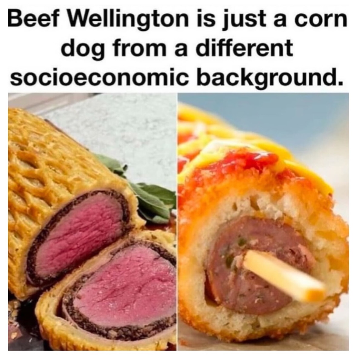 And then there are those well heeled people who consider anything wrapped in phyllo dough to be upscale. I hate to burst yer bubble there but take a gander at this side by side comparison that will blow your snooty mind…