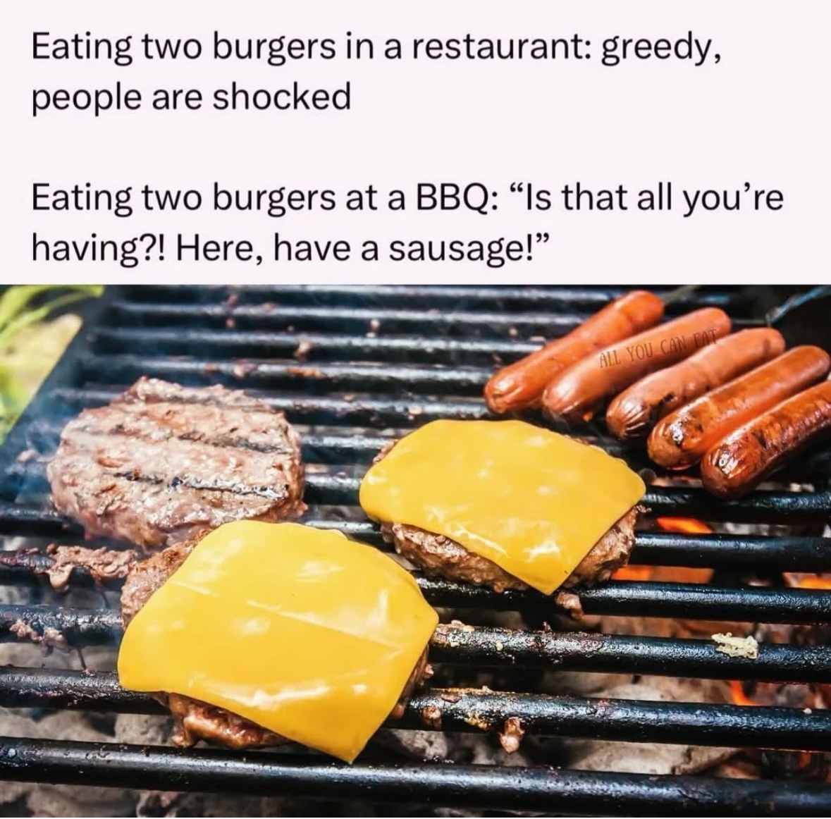 So I guess the same is true for a barbecue. Eating two burgers at home or in a restaurant might seem glutenous. But If you’re at a July 4th party it might just be your opening act. Followed by some good looking corn, a heap of homemade cole slaw and a grilled hot dog with the works. I’m hungry already.