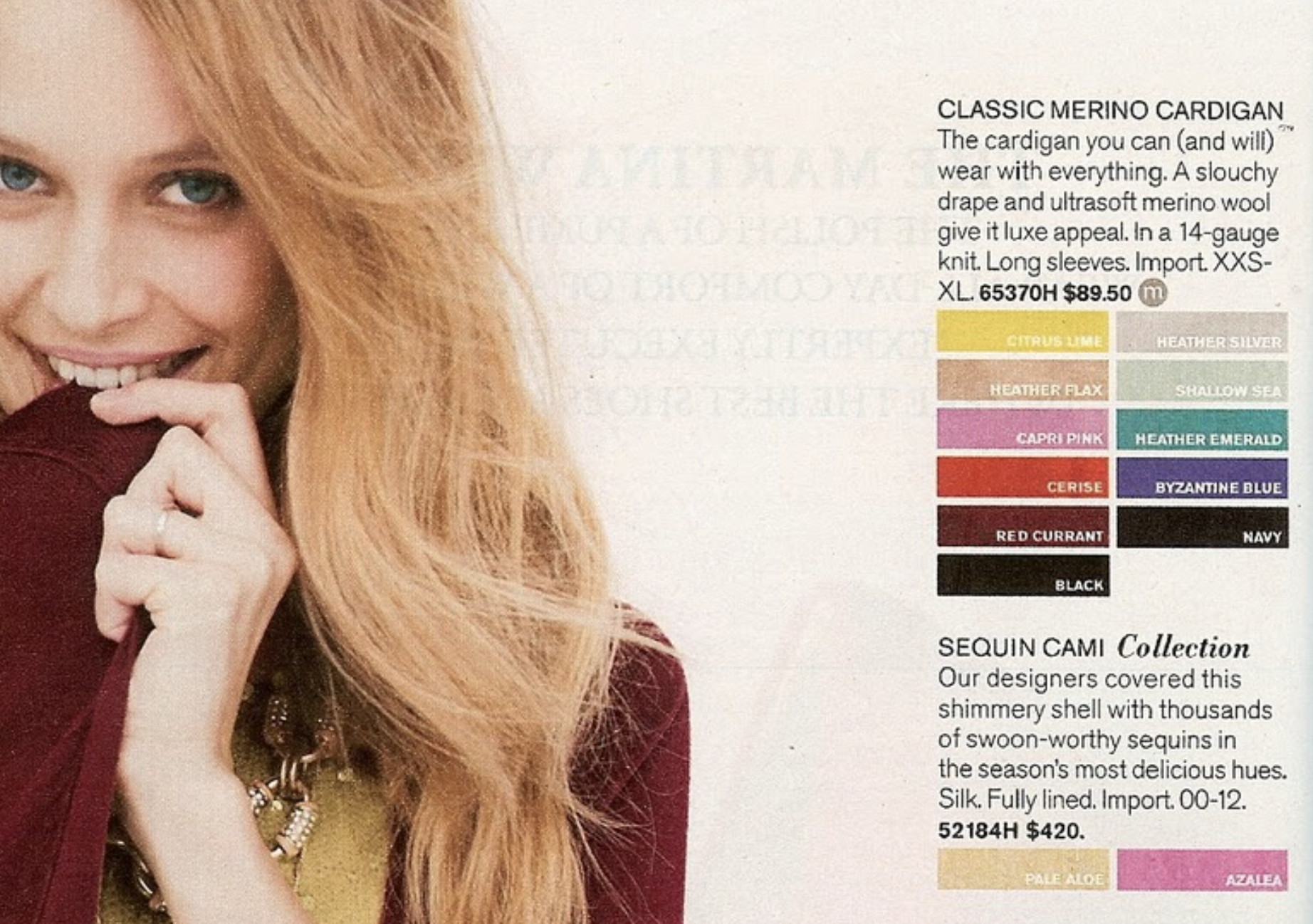 I love a good beige. Taupe. Tawny. Bisque. Heathered Flax. Pale Aloe! They all work for me. These colors remind me of the J.Crew Catalogue from the 80s with all of their tempting shades of neutral. They all sound so chic and muted. Bark. Oak. Oatmeal. I remember being tempted by every Classic Merino Cardigan and Sequin Cami.