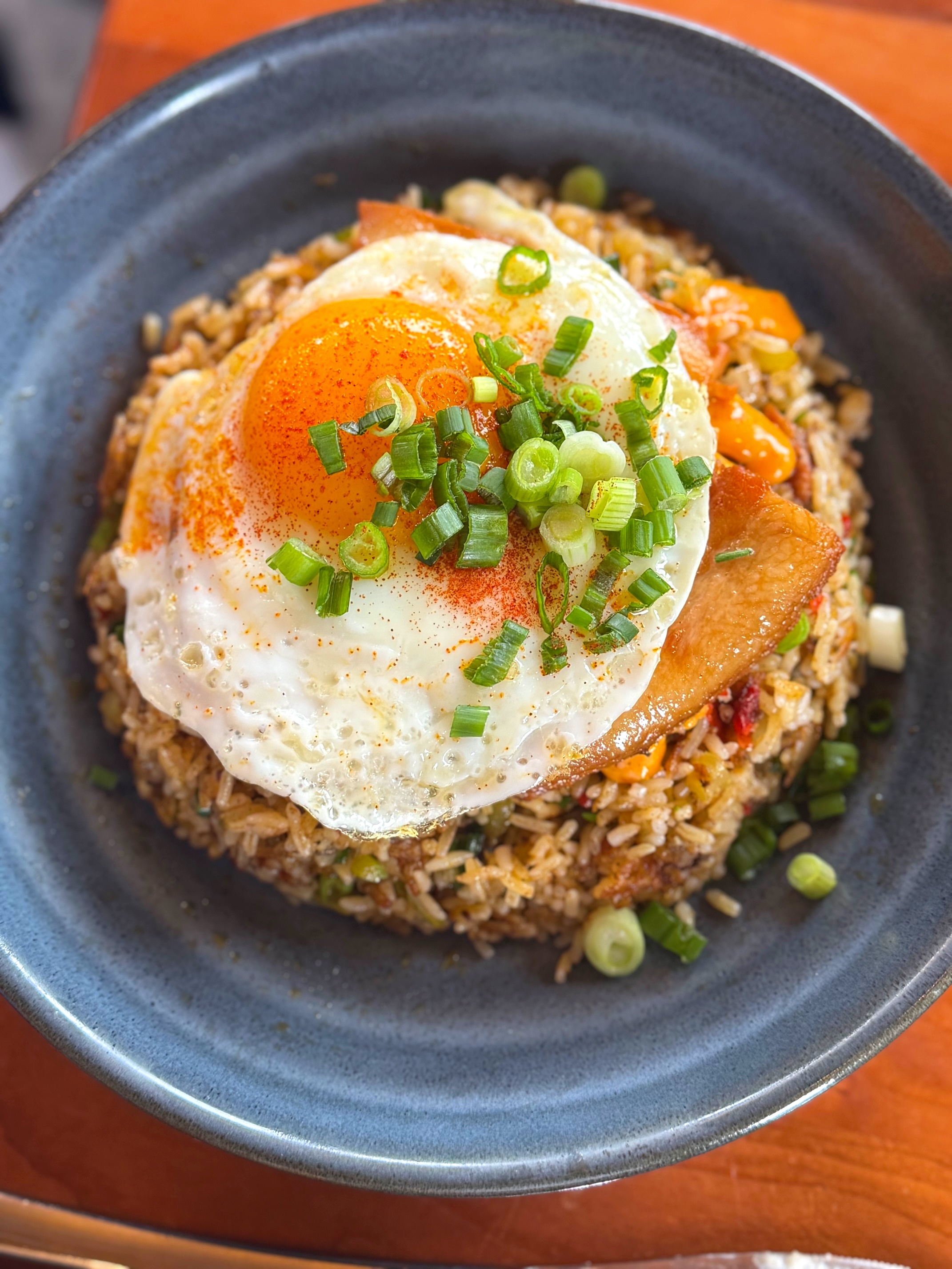 But the Buttermilk Pancakes with warm maple syrup and whipped butter were sweet, fluffy and delicious. And the Dirty South Fried Rice with grilled pork belly, hot mayo, a fried egg, and lacto hot sauce was a table favorite. The soft scrambled eggs with a homemade biscuit got rave reviews. And the Caesar Salad with Fried Chicken looked amazing.