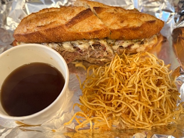 Salt Hank’s is owned by the social media star and cookbook author Henry (Hank) Laporte. His posts have been going viral about his new shop and his killer creation. Hank’s only has two food items on the whole menu. You read that right. TWO. A spectacular looking French Dip that comes with a wide mouth cup of homemade jus for dipping and what they call “Fries,” but between you and me… they are really potato sticks.