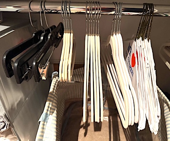Then the remaining clothes back in the closet are moved slightly so as to not highlight the unsightly span created by the removal. The visual effect of an orderly display makes me giddy. Plus, I can’t really afford hangers to take up precious room when space is at a premium. And if possible, I don’t want anything to wrinkle. So the readjustment is necessary to maintain harmony in that clothing cavalcade I call a closet. This is what I tell myself anyway. Please don’t ruin it for me.
