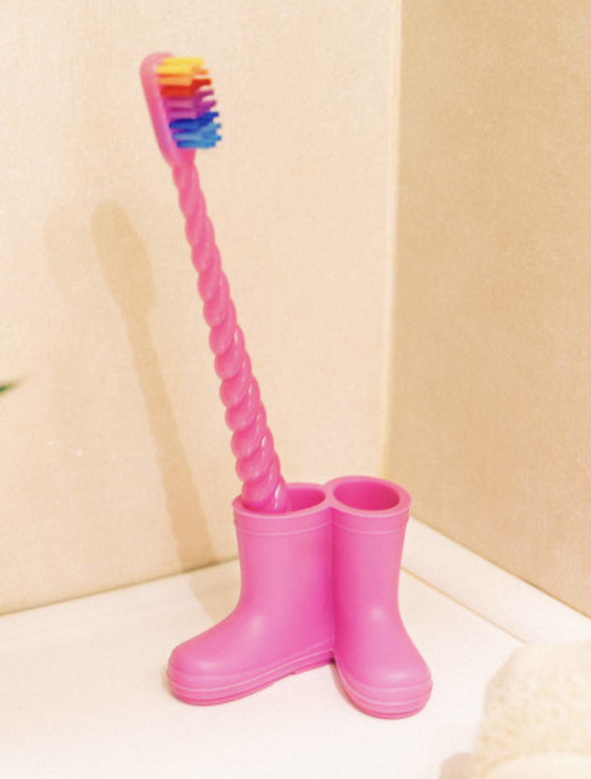 When I travel I’ve got a whole routine going on, because of course I do! I have a Ziploc bag with my liquids in a prepacked toiletry kit. I have downsized items like a mini hairbrush and hilarious silicon toothbrush holder that looks like rain boots that is always ready for takeoff. And I have a go bag with power cords, snacking almonds, business cards, pens, band-aids, hand sanitizer and a bunch of other obscure items I might need in a work emergency like a highlighter, White Out and paper clips. Hey, ya never know.