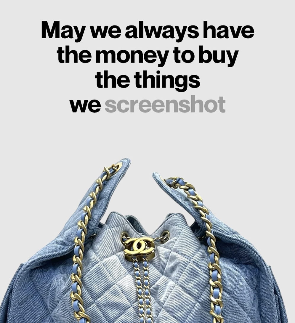 I find that I do screenshot a bunch of interesting things and these items vary greatly in price. I might love a $2 pair of cute flip flops from Old Navy AND concurrently covet a $400,000 gently used Hermès Birkin Himilaya 25. Obviously the heavy hitters are just eye candy since I don’t have a cool half mil waiting in the wings to blow on a purse. But if I did, I wouldn’t anyway despite being helplessly, hopelessly deeply in love. And I know we can’t always get what we want, even if other people openly flaunt our wishlist on the streets and in magazines.