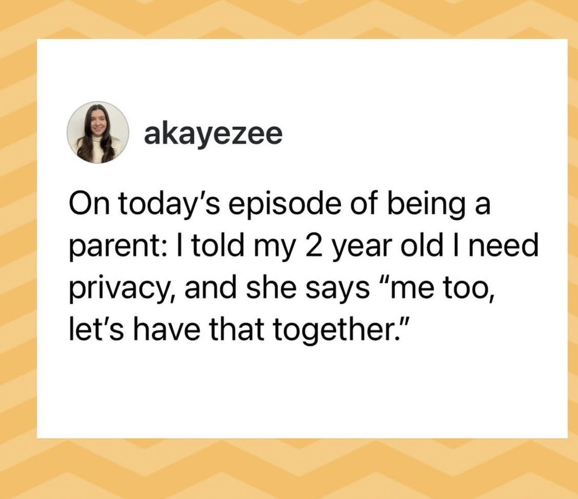 Kids can be so real and so funny when they just blurt out the way it is. This toddler captured my heart with her naive misunderstanding of privacy. This should set the example of managing your expectations as a parent, right?!