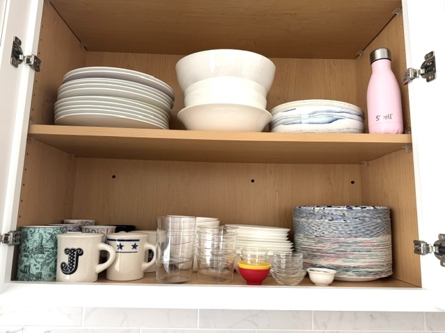 So I’ve shaken it up in the new crib. And here’s how. In the kitchen, instead of putting like items together, I’ve instead put frequently used items together. And what a game changer. I technically live alone. So although Michael is a regular guest, the new apartment is for solo living. Which means the necessary dinner bowls, paper plates, short glasses, and one or two mugs are really my go-to cabinet items. The coffee maker? Nice, but now relegated to the space above the microwave unless M is visiting ya’ll, cause I don’t drink coffee and I want clear counters! Serving bowls? Needed but living on a top shelf. Along with all the other specialty serveware and measuring cups which are nice. This new system allows me to quickly access the things I need and not cabinet hop for my primary items. I love it.